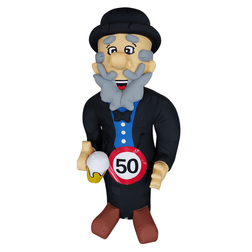 Inclusief blower, zeil, haringen en touw en leeftijdsbanner.